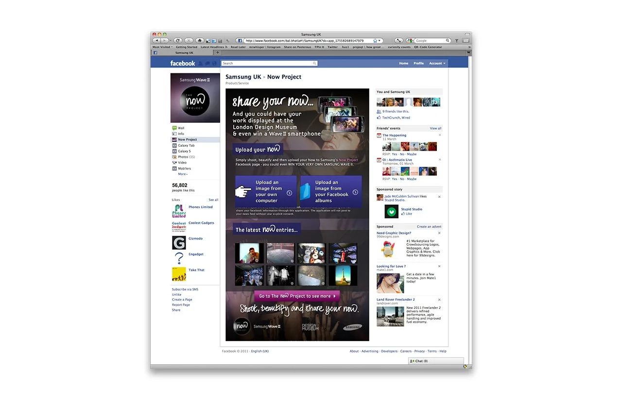 Being a hardcore Instagram addict at the time, this really appealed to my inner photographer. Which in turn inspired the concept called the ‘Now project’. We invited the UK to upload their now to our Facebook page, via the Wave 2 photo editing app. The 25 photos with the most likes would be exhibited for one night only at the Design museum. Surely every photographers dream, no?