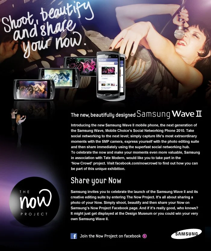 To bring to life the Samsung Wave II highlighting its build in photo editing suite and super fast uploading ability.